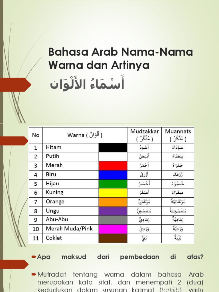 Bahasa Arab Nama Nama Warna Dan Artinya Pdf
